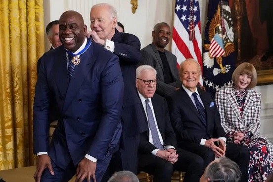 El presidente de Estados Unidos, Joe Biden, entregó la Medalla Presidencial de la Libertad a 19 homenajeados, incluidos el cantante y activista Bono, el exbasquetbolista Earvin «Magic» Johnson y el astro del futbol Lionel Messi.