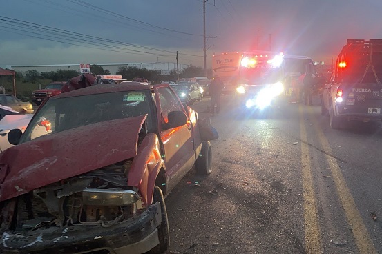 Un accidente vial múltiple dejó un saldo de nueve personas lesionadas de las cuales seis fueron trasladadas para su atención médica, en Ciénega de Flores, Nuevo León.