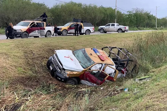 Un agente de la guardia estatal de Tamaulipas resultó herido en una volcadura que tuvo la patrulla que usaban en la persecución contra unos delincuentes armados que momentos antes los atacaron en la ciudad fronteriza de Matamoros.