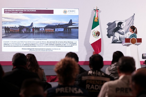 En este contexto, se explicó que el 11 de enero, una delegación integrada por 72 elementos especializados en manejo de fuego y búsqueda y rescate, partió desde la Base Aérea de Santa Lucía hacia Los Ángeles.