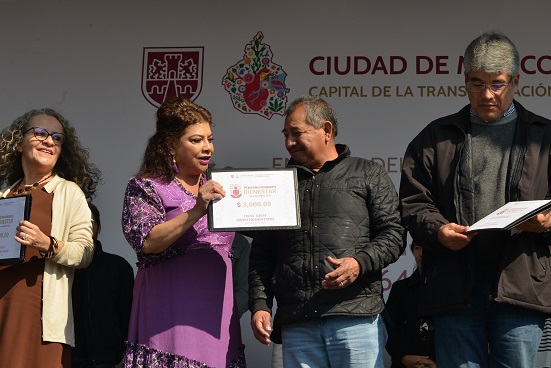 La jefa de Gobierno de la Ciudad de México, Clara Brugada Molina, encabezó el arranque de la entrega del programa Pensión Hombres Bienestar 60 a 64 año, que este año otorga un apoyo de 3 mil pesos bimestrales a más de 77 mil beneficiarios, en favor de la economía familiar.