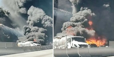 Cierran la México-Querétaro tras explosión de una pipa y choque múltiple