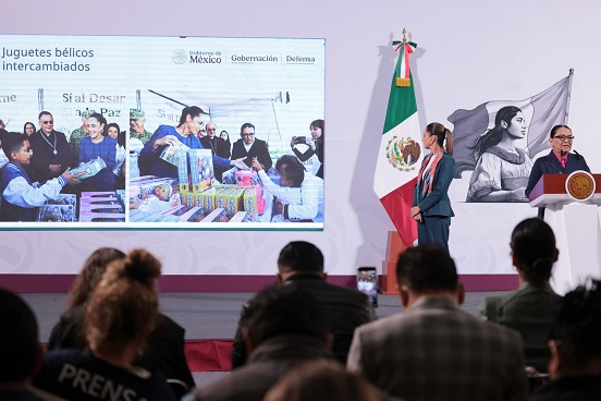 La secretaria Rodríguez subrayó que en los mismos módulos se cajean juguetes bélicos por juguetes educativos, a fin de que los menores de edad aprendan que la resolución de conflictos no requiere del uso de armas de fuego. A la fecha se han otorgado 2 mil 226 artículos.