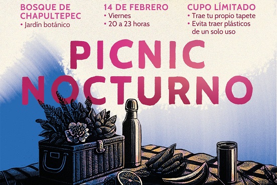 La Secretaría del Medio Ambiente (SEDEMA) de la Ciudad de México, a través de la Dirección General del Sistema de Áreas Naturales Protegidas y Áreas de Valor Ambiental (DGSANPAVA) y de la Dirección Ejecutiva del Bosque de Chapultepec, invita a la ciudadanía a participar en el Picnic Nocturno, que se llevará a cabo en el Jardín Botánico de la Primera Sección del Bosque de Chapultepec, el viernes 14 de febrero, en un horario de 20:00 a 23:00 horas.