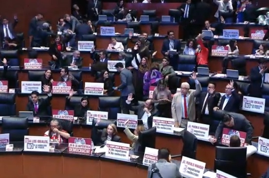 Sobre la reserva avalada en votación económica, Marko Cortés Mendoza, del PAN, afirmó que lo que dijo el senador López Hernández es que el nepotismo “no está mal de aquí al 2030, que de aquí al 2030 se vale el nepotismo en México”. Cuestionó el por qué no se implementa la reforma desde ahora o desde el 2027: “¿para qué le den los votos?, ¿para qué no se baje ningún partido de su coalición? No patee el bote, Morena es simulación”, señaló.