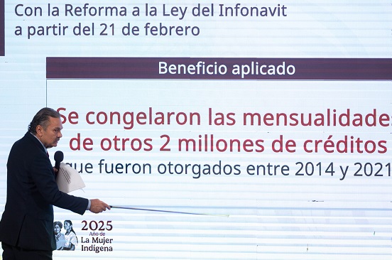 Derivado de la reciente reforma a la Ley del Instituto del Fondo Nacional de la Vivienda para los Trabajadores (Infonavit), el organismo anunció este viernes el congelamiento de otros dos millones de créditos hipotecarios, adicionales a los 2 millones que se habían congelado en noviembre, con lo que en total en lo que va del gobierno de la presidenta Claudia Sheinbaum Pardo se han congelado los saldos de un total de cuatro millones de créditos que operaban bajo esquemas que incrementaban la deuda de los acreditados a pesar del cumplimiento puntual de pagos, lo que los hacía impagables para los trabajadores.