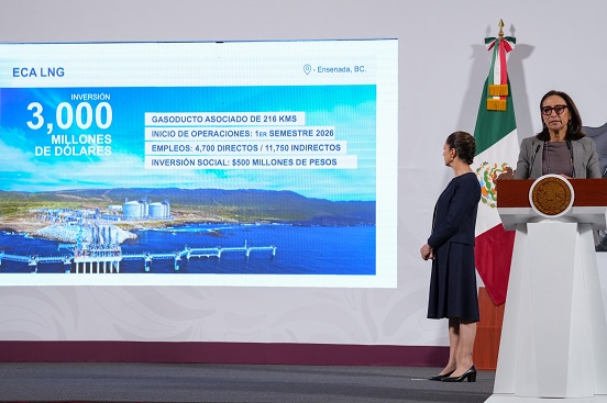 Tania Ortiz Mena, presidenta de Sempra Infraestructura en América Latina, anunció que la empresa actualmente desarrolla dos proyectos clave en Baja California, con una inversión de 3 mil 550 millones de dólares. Uno de ellos es Energía Costa Azul LNG en Ensenada, que permitirá la exportación de gas natural y contribuirá a la transición energética global. El segundo es un parque eólico en La Rumorosa, con una inversión de 550 millones de dólares y capacidad de 300 megawatts de generación de energía.