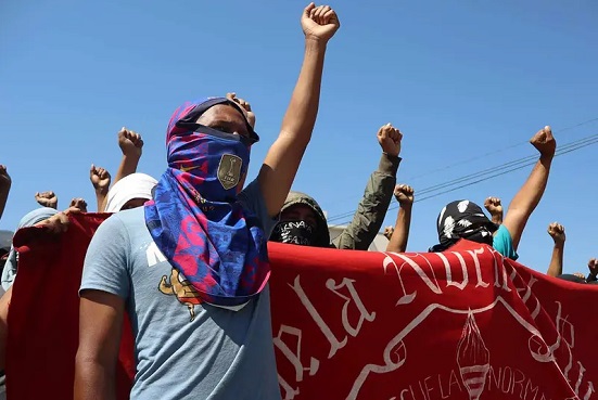 Normalistas de Ayotzinapa bloquearon la mañana de este martes la Autopista del Sol a la altura del Parador del Marques para exigir al Gobierno del Estado el pago de becas.