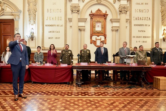 A la sesión extraordinaria de Cabildo en Palacio Municipal, encabezada por el alcalde José Chedraui Budib, asistieron el secretario de Seguridad Pública del Estado, vicealmirante Francisco Sánchez González; el General Vicente Javier Mendujano Acevedo, coordinador Estatal de la Guardia Nacional en Puebla; el General Santos Gerardo Soto, comandante de la XXV Zona Militar; así como el coordinador de Gabinete, José Luis García Parra y autoridades municipales.