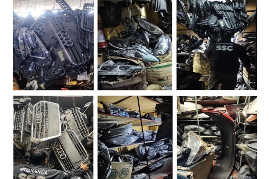En el lugar fueron aseguradas 15 toneladas de autopartes, entre ellas: