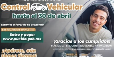 A favor de la economía familiar, se amplía al 30 de abril pago de Control Vehicular en Puebla