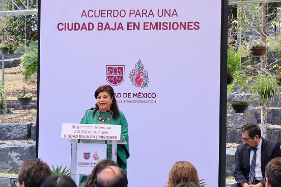 Ante diversos organismos empresariales, la mandataria refirió que el Acuerdo por ser una Ciudad Baja en Emisiones representa la primera ocasión en que la iniciativa privada y la autoridad capitalina se unen de esta forma para ayudar al ambiente y refirió que es el punto de partida para elaborar un programa conjunto de mitigación del cambio climático, con miras hacia el 5 de junio próximo, cuando se conmemora el Día Mundial del Medio Ambiente.