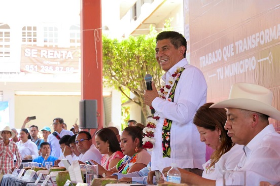 “Nosotros venimos a apoyar un poco, a fortalecer diversas obras con este modelo de atención al visitar a todos los municipios y comunidades para sacar adelante a Oaxaca”, afirmó el Mandatario estatal en este recorrido como parte de su estrategia Trabajo que Transforma tu Municipio.
