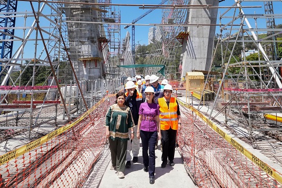 “En el poniente de la Ciudad de México, supervisamos el puente atirantado de la última parte del tren El Insurgente, ubicado junto a la Cuarta Sección del Bosque de Chapultepec y la Universidad de la Salud. Una magnífica obra”, indicó.