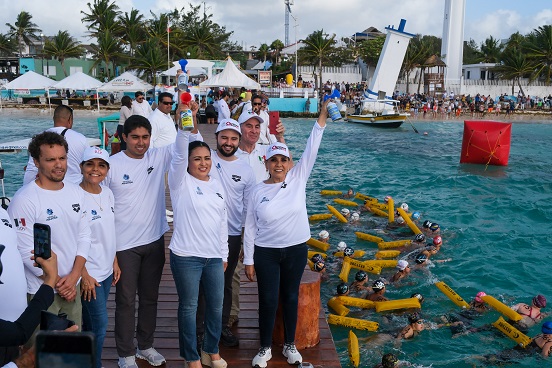 Puerto Morelos.- Con más de 624 atletas registrados de 29 estados, 340 hombres y 284 mujeres, la gobernadora Mara Lezama Espinosa dio el banderazo la salida del Campeonato Nacional de Aguas Abiertas desde el muelle recién rehabilitado y construido con inversión de 6.7 millones de pesos, de Puerto Morelos.