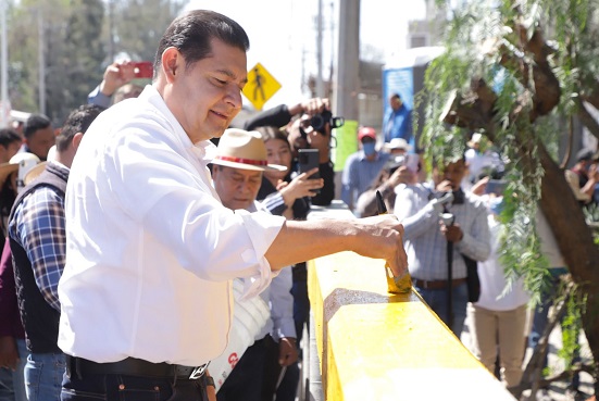 Acompañado por el edil de Tlacotepec de Benito Juárez, Martín Camargo de la Peña e integrantes del gabinete estatal, el gobernador Alejandro Armenta, previamente inauguró el entronque de la Carretera Tlacotepec de Benito Juárez a San Marcos Tlacoyalco, que beneficiará a más de 16 mil habitantes de la zona.