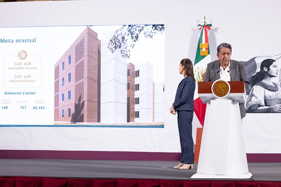 La secretaría de Desarrollo Agrario, Territorial y Urbano (SEDATU), Edna Elena Vega Rangel, detalló que este año, con una inversión de 128.4 mil mdp se construirán 186 mil viviendas: 100 mil a través del Instituto del Fondo Nacional de la Vivienda para los Trabajadores (Infonavit) y 86 mil de la Comisión Nacional de Vivienda (Conavi). Además, se otorgarán 300 mil apoyos para mejoramientos y 120 mil escrituras. Estimó que con ello se generará en 2025 una derrama económica de 196 mil mdp a nivel nacional y 16.1 mil mdp en economías locales. En tanto que se crearán más de 1.7 millones de empleos directos y más de 2.6 millones de indirectos.