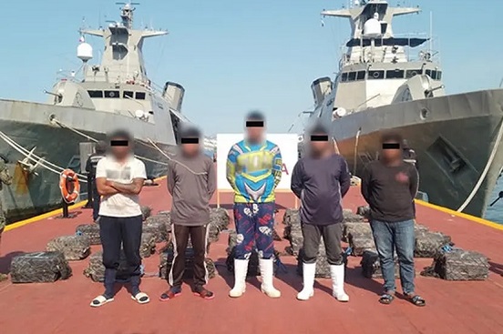 Los cinco detenidos, la presunta droga y la embarcación fueron aseguradas y transportadas vía marítima al muelle de la Octava Región Naval, para ser puestas a disposición de la FGR, para la integración de la carpeta de investigación correspondiente.