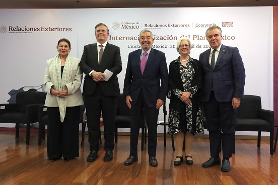 De esta manera, la SRE y la SE ponen en marcha una estrategia que busca la internacionalización del Plan México. La SRE continuará con el fortalecimiento de este eje estratégico para identificar, a través de las Representaciones de nuestro país en el Exterior y en cercana coordinación con las dependencias implementadoras en territorio nacional, mayores oportunidades que potencien el alcance del Plan México y los ejes estratégicos identificados por la presidenta de México.
