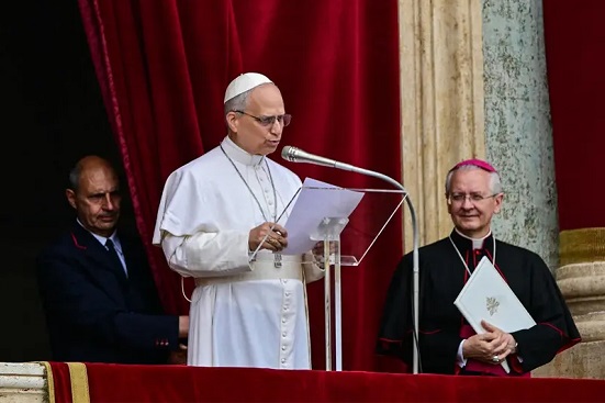 El pontífice nacido en Estados Unidos y nacionalizado peruano encabezó su primera bendición dominical en la plaza de San Pedro, que tradicionalmente sirve de ventana a los pontífices para abordar temas de interés mundial.