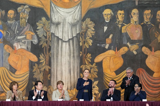 Acompañaron a la Presidenta de México, la secretaria de Gobernación, Rosa Icela Rodríguez Velázquez y la secretaria de Ciencia, Humanidades, Tecnología e Innovación, Rosaura Ruiz Gutiérrez.