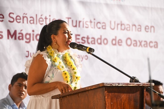 San Pedro y San Pablo Teposcolula, Oax.- La Secretaría de Turismo del Estado (Sectur Oaxaca) realizó la entrega simbólica de más de 100 piezas de señalética turística urbana a los Pueblos Mágicos de: Mazunte, Huautla de Jiménez, San Pedro y San Pablo Teposcolula y Capulálpam de Méndez.