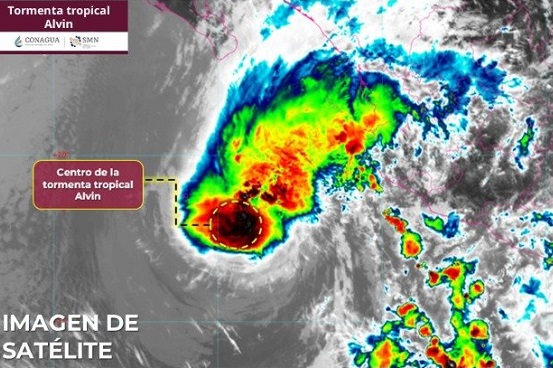 De acuerdo con el SMN, la tormenta tropical Alvin no tocará tierra en las costas de México, ya que se seguirá moviendo en paralelo a las costas como tormenta tropical y perderá fuerza para degradarse a baja presión para el sábado en la madrugada mientras se dirige hacia Baja California Sur.