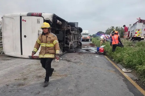 Medios locales precisaron que “las víctimas viajaban en un camión de pasajeros proveniente de Escobedo y que tenía como destino Tampico, Tamaulipas, cuando de pronto volcó”.