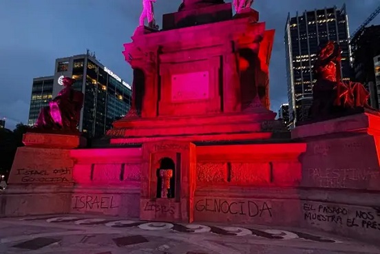 La columna de Ángel de la Independencia una vez más fue vandalizada con pintas por parte de un grupo de activistas denominados “Pro Palestina” en la Ciudad de México.