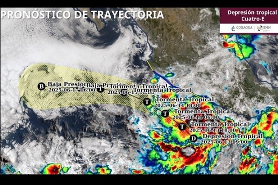 Durante las próximas horas, la depresión tropical Cuatro-E ocasionará lluvias en diversos estados del país: