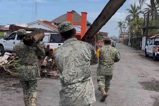 Elementos del Ejército Mexicano y de la Guardia Nacional acudieron a ambas playas para apoyar en las labores de remoción de escombros.