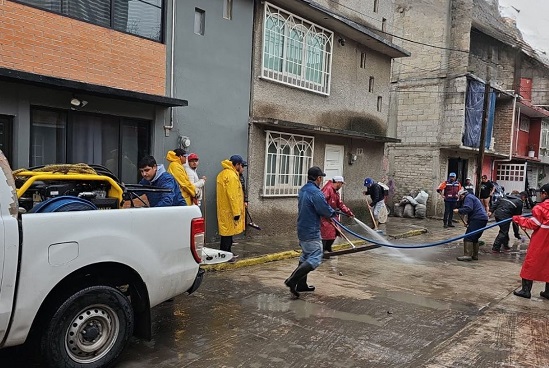 Personal del Grupo Tláloc trabajó en el desalojo del agua con apoyo de dos equipos hidroneumáticos, dos bombas de achique y una pipa, informó la Comisión del Agua del Estado de México (CAEM).