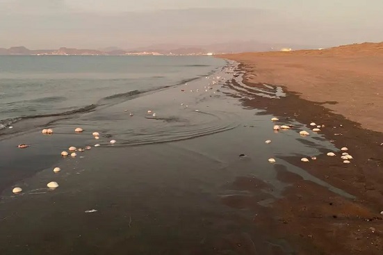 Alerta en La Paz, Baja California, Sur, por el impacto de un florecimiento algal nocivo, que está provocando la muerte de miles de peces globo o botete, morenas, pequeñas rayas, jaibas y medusas, que aparecieron en los últimos días sobre la arena en el malecón y las playas del Mogote.