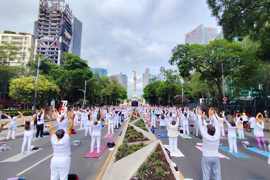 Con la finalidad de resaltar la importancia de la actividad física entre los capitalinos, la Secretaría de Salud de la Ciudad de México (SEDESA) en equipo con el Instituto del Deporte de la Ciudad de México (INDEPORTE) y los Puntos de Innovación, Libertad, Arte, Educación y Saberes (PILARES), llevaron a cabo la clase masiva gratuita de Yoga por la Paz en el Ángel de la Independencia de la Ciudad de México.