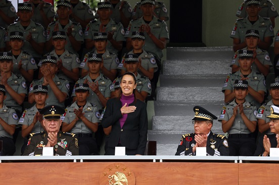 Durante su intervención, Sheinbaum reafirmó su respaldo a la estrategia de seguridad nacional, asegurando que «la estrategia funciona y dará cada día mayores resultados», subrayando que el país cuenta con las y los mejores elementos de México para alcanzar los objetivos de paz y justicia.