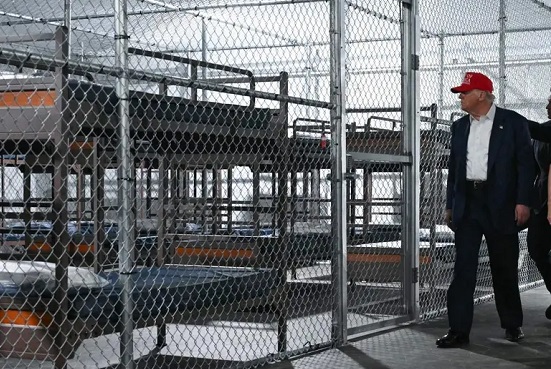 El presidente de Estados Unidos, Donald Trump, recorrió el martes el nuevo centro de detención de inmigrantes «Alligator Alcatraz» en los Everglades de Florida. La administración Trump está convirtiendo el remoto Aeropuerto de Entrenamiento y Transición Dade-Collier en una instalación que, según las autoridades, eventualmente albergará hasta 5 mil personas.