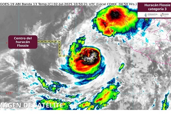 El huracán Flossie se mantiene como categoría 3 en la escala Saffir-Simpson y avanza cercano a las costas de Jalisco, informó la Comisión Nacional del Agua (Conagua) en su más reciente reporte; ésta es su trayectoria EN VIVO hoy 2 de julio de 2025.