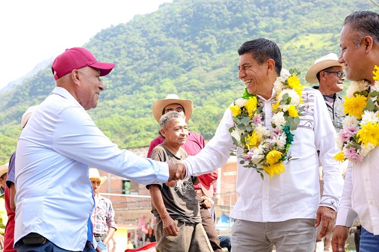 San Bartolomé Ayautla, Oax.- En su visita a este municipio de la Sierra de Flores Magón, el Gobernador Salomón Jara Cruz anunció obras en viviendas y los diferentes barrios, que mejorarán la calidad de vida de las y los habitantes.