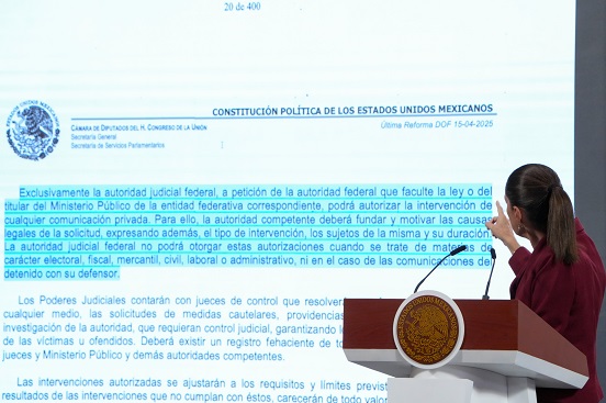 Con base en el artículo 16 constitucional, la mandataria señaló que solamente la autoridad judicial federal puede solicitar intervenciones incluso de GPS, cuando se trate de un desaparecido, de un secuestro y se pide la información directamente a la empresa telefónica para poder atender de manera extraordinaria un caso de ese tipo.