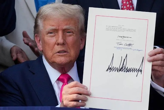 Es un buen momento», dijo, mientras firmaba el documento con un grueso marcador, rodeado de decenas de legisladores republicanos que se alinearon para apoyar su «Ley grande y hermosa», como la bautizó. «Entramos en la era dorada de Estados Unidos», aseguró.
