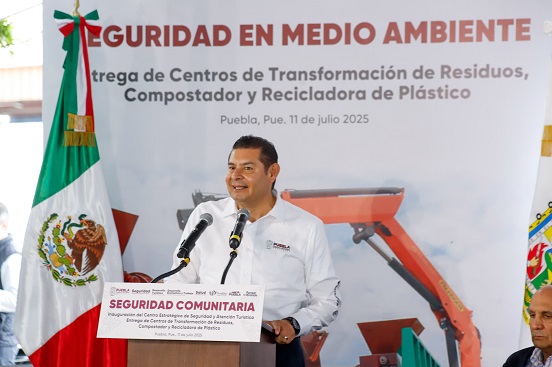 CIUDAD DE PUEBLA, Pue.- El gobernador de Puebla, Alejandro Armenta, encabezó la entrega de 120 Centros de Transformación de Residuos, Compostador y Recicladora de Plástico, los cuales impulsan un modelo de economía circular, donde se cumple el proceso de comprar, procesar, empacar, consumir y reutilizar, con el propósito de reducir la contaminación y proteger al medio ambiente.
