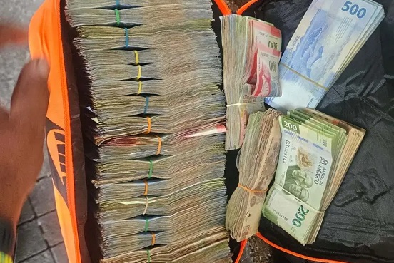 - Una mochila color naranja con fajos de billetes que sumaron aproximadamente un millón de pesos.