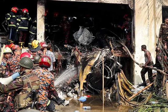 La caída del caza, cuyo motivo no fue precisado, dejó también más de 100 heridos, de los cuales 83 fueron hospitalizados, según informó la oficina de prensa del dirigente interino Muhammad Yunus.