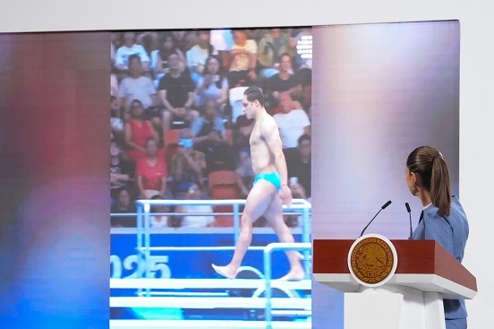 La presidenta Claudia Sheinbaum Pardo extendió este viernes sus felicitaciones al clavadista mexicano Osmar Olvera, quien consiguió la medalla de oro en la prueba de trampolín de tres metros del Mundial de Deportes Acuáticos Singapur 2025.