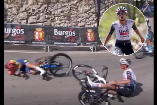 Isaac del Toro sufrió una caída en la primera etapa de la Vuelta a Burgos. El ciclista mexicano tuvo este aparatoso accidente a 300 metros de la meta durante el sprint, al acometer una curva y resbalarse, lo que derribó también a Giulio Ciccone.