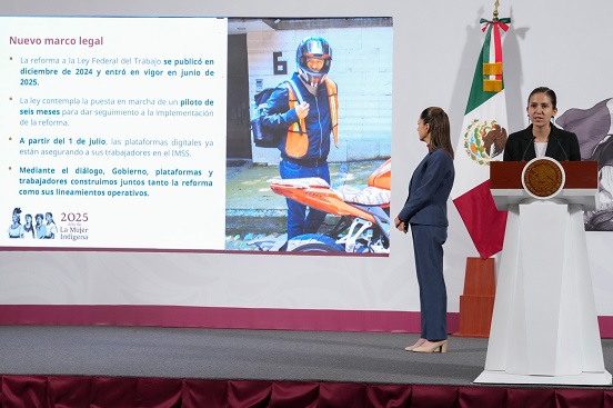 Por último, la subsecretaria de Empleo y Productividad Laboral refirió que en el marco del programa piloto de la Reforma Laboral en materia de Plataformas Digitales, las aplicaciones están obligadas, a inicio de cada mes, a dar de alta a todas las personas que trabajan en estas plataformas, si al final del mes estas generan ingresos equivalentes al menos a un mes de salario mínimo la plataforma debe asegurarla con todos los beneficios del IMSS.