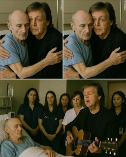 Los pasillos de un hospital en Londres no se llenaron de música, aunque millones quisieron creerlo. La escena viral mostraba a Paul McCartney entrando en silencio con su vieja guitarra, cantando “Hey Jude” al oído de un Phil Collins postrado y frágil, mientras una lágrima corría por su mejilla. El remate era cinematográfico: “Aún somos una banda de música, aunque el único escenario que nos quede sea el de la vida misma”. Pero nada de eso ocurrió.