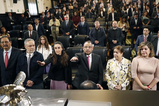 Tras el aval de la asamblea, Gerardo Fernández Noroña, presidente de la Mesa Directiva, tomó la protesta correspondiente a Reyes Colmenares, ceremonia que se llevó a cabo en el salón de sesiones de la Antigua Casona de Xicoténcatl.