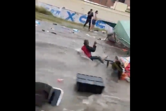 El hecho más alarmante ocurrió en calles del fraccionamiento Solidaridad II, donde la fuerza del agua derribó varios puestos del tianguis. Dos comerciantes no lograron salir a tiempo y fueron arrastrados por la corriente.