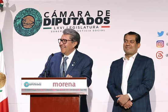 En conferencia de prensa desde San Lázaro, el presidente de la Junta de Coordinación Política (JUCOPO), Ricardo Monreal Ávila, acompañado por el presidente de la Mesa Directiva, Sergio Gutiérrez Luna, abordó temas clave de la agenda legislativa, la reforma judicial, el paquete económico 2026, los nombramientos en el Poder Judicial y la polémica por el proyecto “Portero” anunciado por la DEA.